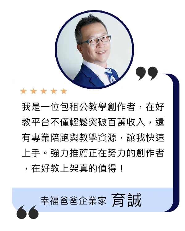好教知識平台相當重視具有知識與專業的創作者,好教為了作為創作者的後盾準備了,不抽成的平台專業的影音團隊,以及僅有好教知識平台才有的超強營銷系統,幫助全亞洲知識創作者,創造高價值線上課程,過著全方位幸福100分的人生。